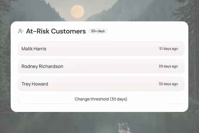 A scoring system that analyzes multiple factors (booking frequency, payment history, engagement, etc.) to identify customers likely to leave. Available on Team and Enterprise plans.