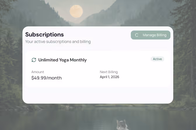 Unlimited monthly memberships. 10-class packs. Drop-in rates. Intro offers for new students. Set the price, billing frequency, included credits, and trial period. Mako handles billing automatically. The pricing flexibility of a boutique studio. The automation of enterprise software.